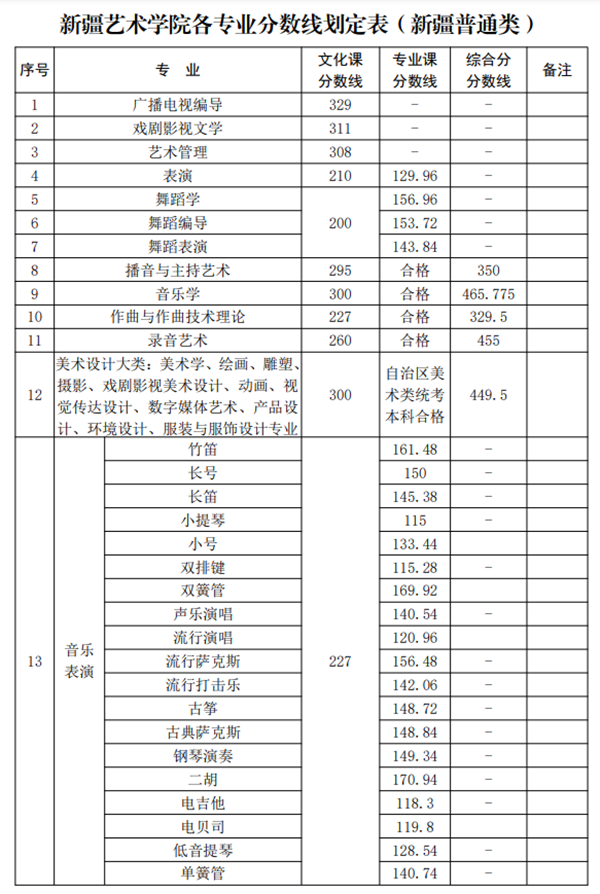 新疆艺术学院录取分数线