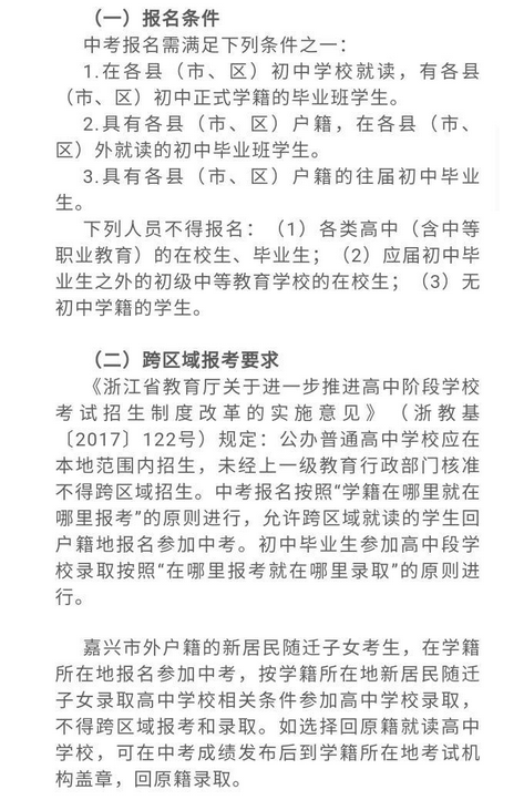 方法君整理了关于2021年浙江嘉兴中考报名条件,希望对同学们有所帮助,仅供参考。