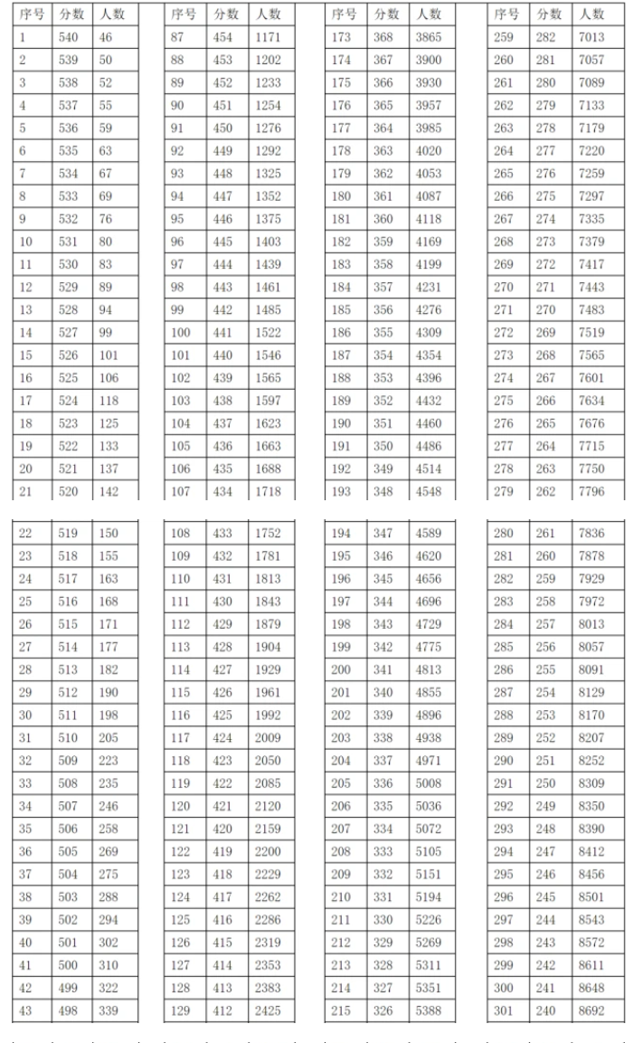 2021年乌兰察布中考一分一段表