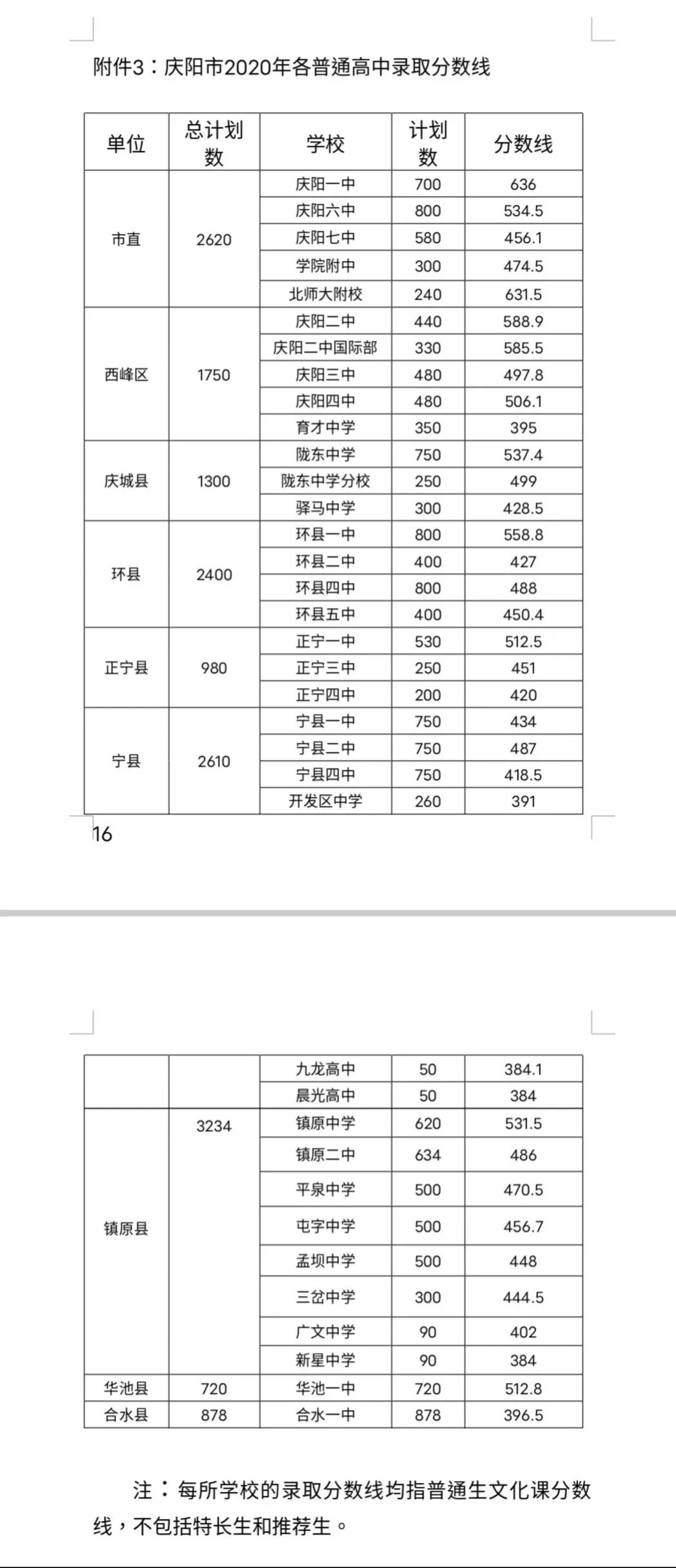 2021年庆阳中考分数线_庆阳高中录取分数线是多少