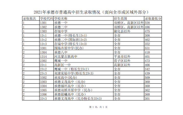 2021年承德中考分数线_承德2021高中录取控制分数线