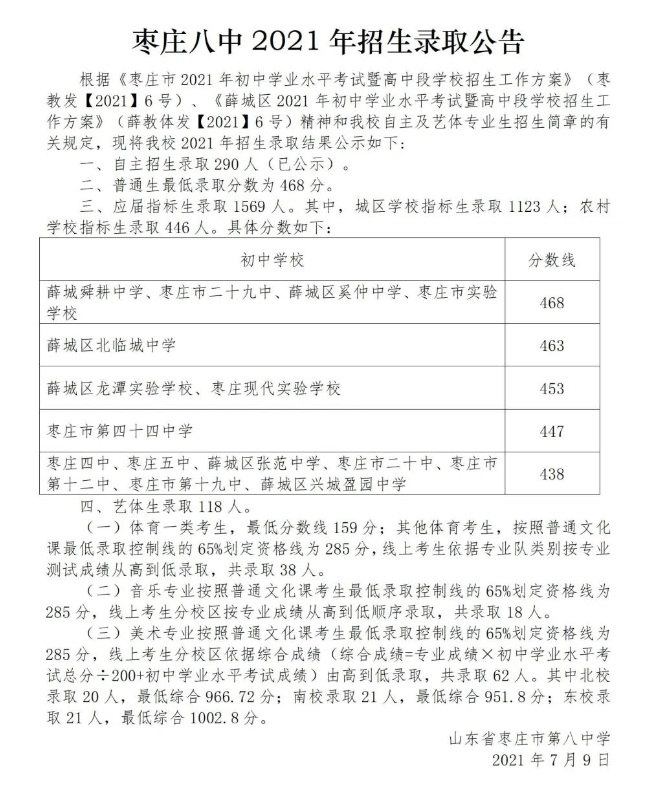 根据《枣庄市2021年初中学业水平考试暨高中段学校招生工作方案》、《枣庄市2021年普通高中招生录取工作方案》、《滕州市2021年初中学业水平考试暨高中段学校招生工作方案》及滕州二中2021年招生简章、艺体招生简章,制定本录取方案。