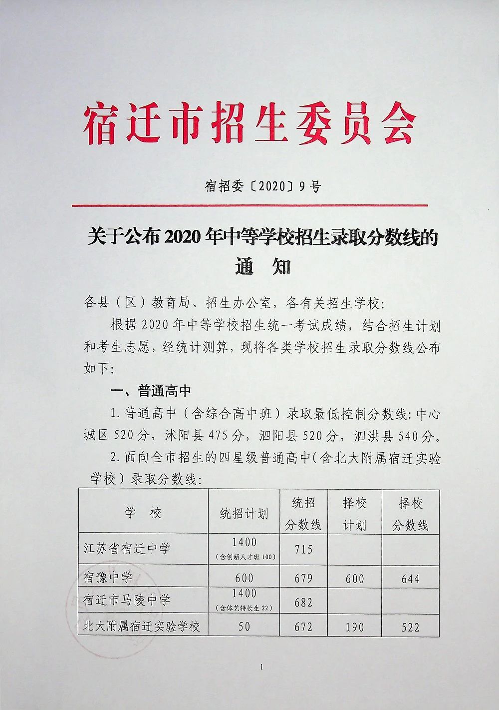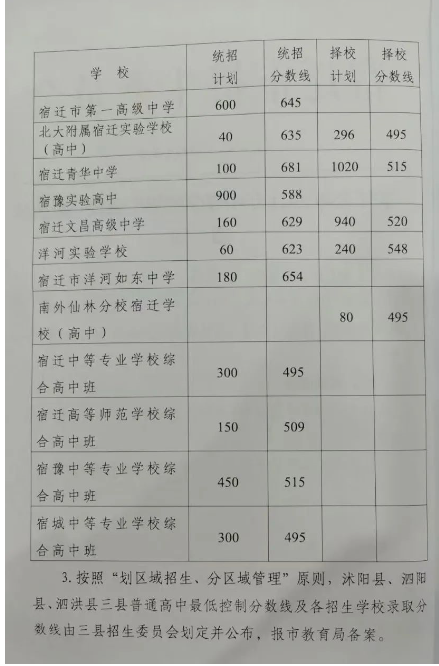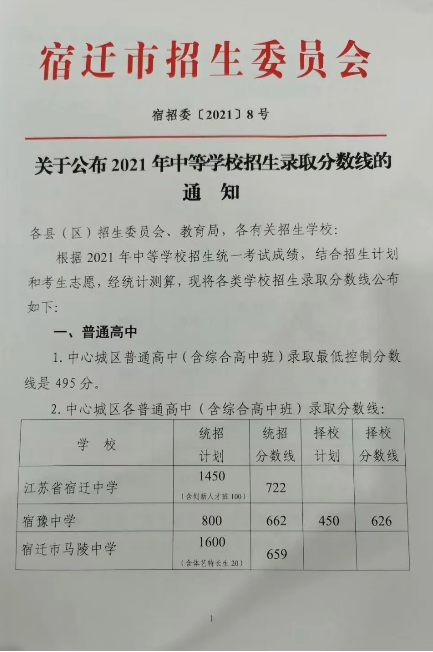 2021年宿迁中考分数线一览表_宿迁高中录取分数线是多少