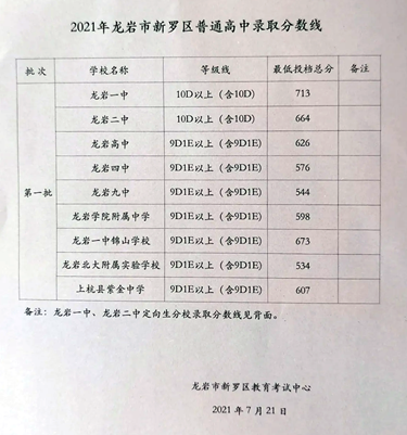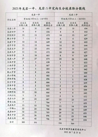 2022年龙岩中考录取分数线_龙岩中考多少分能上高中2022