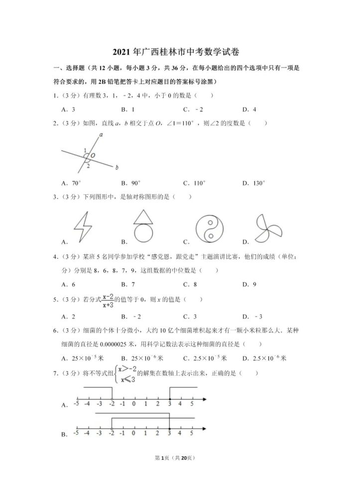 2021年桂林中考数学试卷